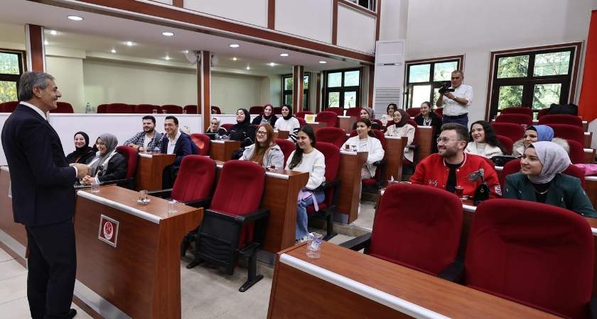 Şehrin siyasetini, yönetimini ve meclis usulünü tanıyan, merak ettikleri sorulara cevap bulan üniversite öğrencileri, meclis sonrası Başkan Yusuf Alemdar’la da görüştü.
