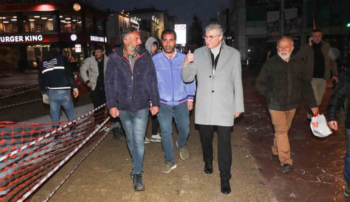 Dün gece saatlerinde sahaya çıkan Yüce, rekreasyon projesinin başladığı Çark Caddesi’nin Dr. Nuri Bayar Ortaokulu ile Millet Bahçesi arasındaki bölümündeki çalışmaları yerinde gördü. Bölgedeki esnafı da tek tek ziyaret eden Yüce, talep ve istekleri dinledi. Çözüm odaklı bir çalışma yürüteceklerini ifade eden Yüce, projenin bölge ticaretine de ciddi katkı sunacağını ifade etti.