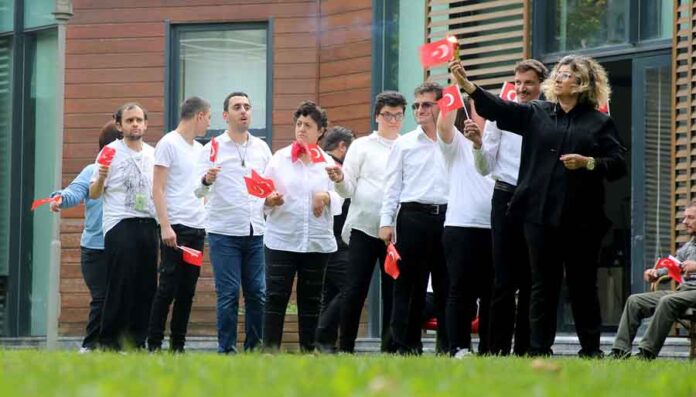 Engelsiz Hobi Kursu öğrencileri Cumhuriyet’in bir asrı devirdiği günlerde ‘kırmızı ve bayazla’ süslenen harika bir gösteri yaptı. Ay yıldızlık bayrak açıldı, kırmızı ve beyaz meşaleler yakıldı, Türkiye haritasının parça parça birleştirildiği bir gösteri düzenlendi ve zafer marşları söylendi. Yapılan gösteride Türkiye’nin toprak bütünlüğünün manevi değerine dikkat çekildi.
