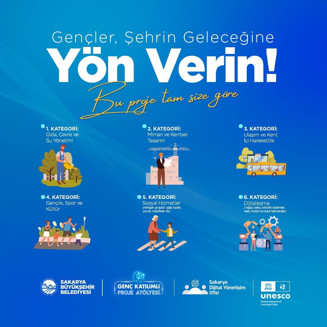 Yarışma kapsamında Gıda, Çevre ve Su Yönetimi, Mimari ve Kentsel Tasarım, Ulaşım ve Kent İçi Hareketlilik, Gençlik, Spor ve Kültür, Sosyal Hizmetler ve Dijitalleşme olmak üzere altı farklı kategoride projeler kabul edilecek. 15-30 yaş arası gençler, bireysel veya ekip olarak birden fazla projeyle başvuruda bulunabilecekler. Başvurular www.sakarya.bel.tr adresi üzerinden 10 Nisan tarihine kadar yapılabilecek.