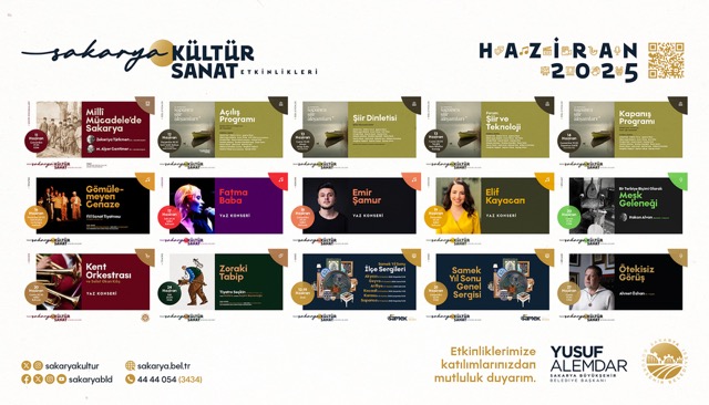Kültür ve Sosyal İşler Dairesi Başkanlığı, “Büyükşehir Belediyesi olarak kültür ve sanat alanında düzenlediğimiz etkinlikler Haziran ayında da tüm hızıyla devam edecektir. Birçok farklı alanda sanatseverlerin karşısına çıkacak olan programlarda, konser, sergi programları, tiyatro gösterimi, söyleşi ve dinleti programları yer alacaktır. Etkinliklere katılım sağlamak isteyen vatandaşlarımız program takvimine ve sanal etkinlik kitapçığına www.sakarya.bel.tr adresi üzerinden ulaşabilecektir” ifadeleri kullanıldı.