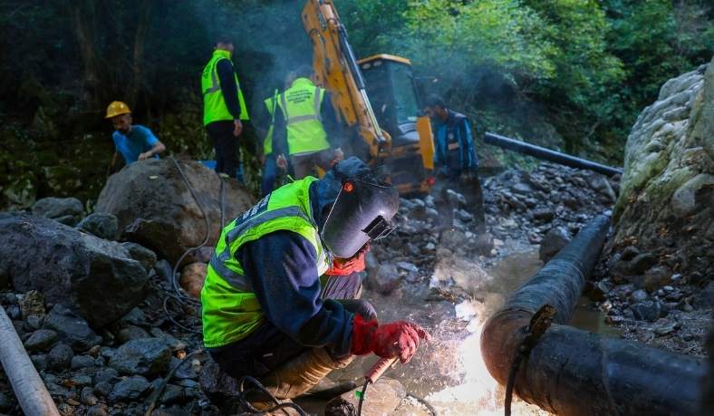 Ekiplerin uzun arayışları sonucu keşfettiği bin metre yükseklikteki iki adet su kaynağının ana depoya bağlantısı aynı gün içinde yapıldı.