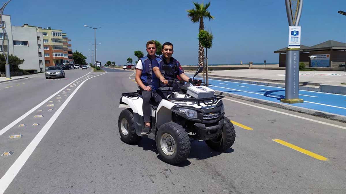 Karasu Belediyesi, vatandaşların daha güvenli ortamda tatillerini sürdürmeleri için araç filosundaki ATV sayısını ikiye çıkartarak ATV’li zabıta timi oluşturdu. Havaların ısınmasıyla vatandaşların yoğun olarak kullandığı sahil bölgesinde görev yapan ATV’li zabıta timi, bu alanlarda meydana gelebilecek olaylara anında müdahale ediyor. Vatandaşları çevreye karşı duyarlı olmaları konusunda da uyaran zabıta timi, gün boyunca plajların denetimini sağlıyor.