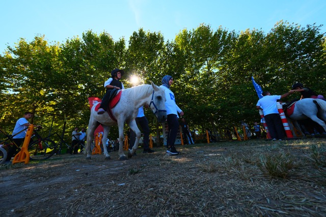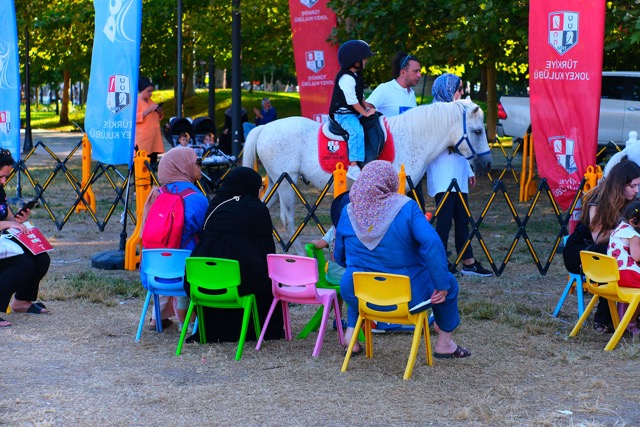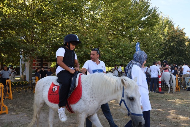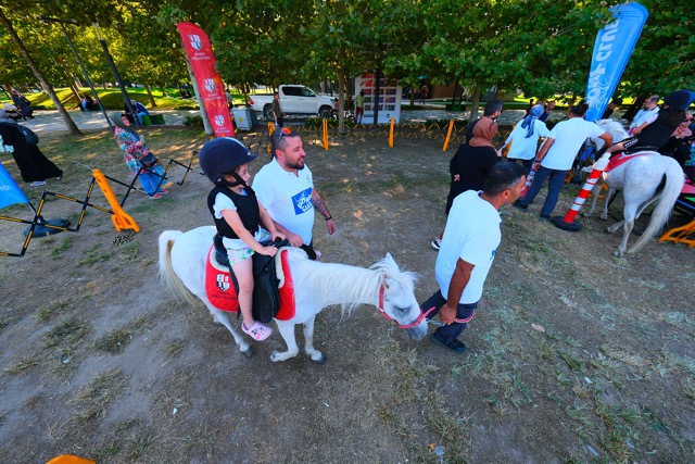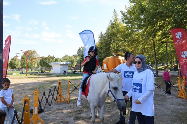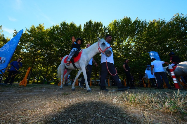 Diğer at ırklarına göre daha küçük yapılarıyla ilgi çeken pony atlara binen çocukların heyecanı yüzlerine yansıdı. Etkinlik, festival programı kapsamında üç gün boyunca ziyaretçilere açık şekilde devam ediyor.