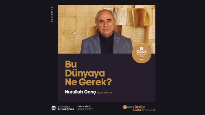 Sakarya Büyükşehir Ocak kültür sanat etkinlikleri ‘Bu Dünyaya Ne Gerek?’ isimli konferans ile devam edecek. Yazar Nurullah Genç’in katılacağı program 18 Ocak Çarşamba günü saat 19.00’da AKM’de gerçekleştirilecek.