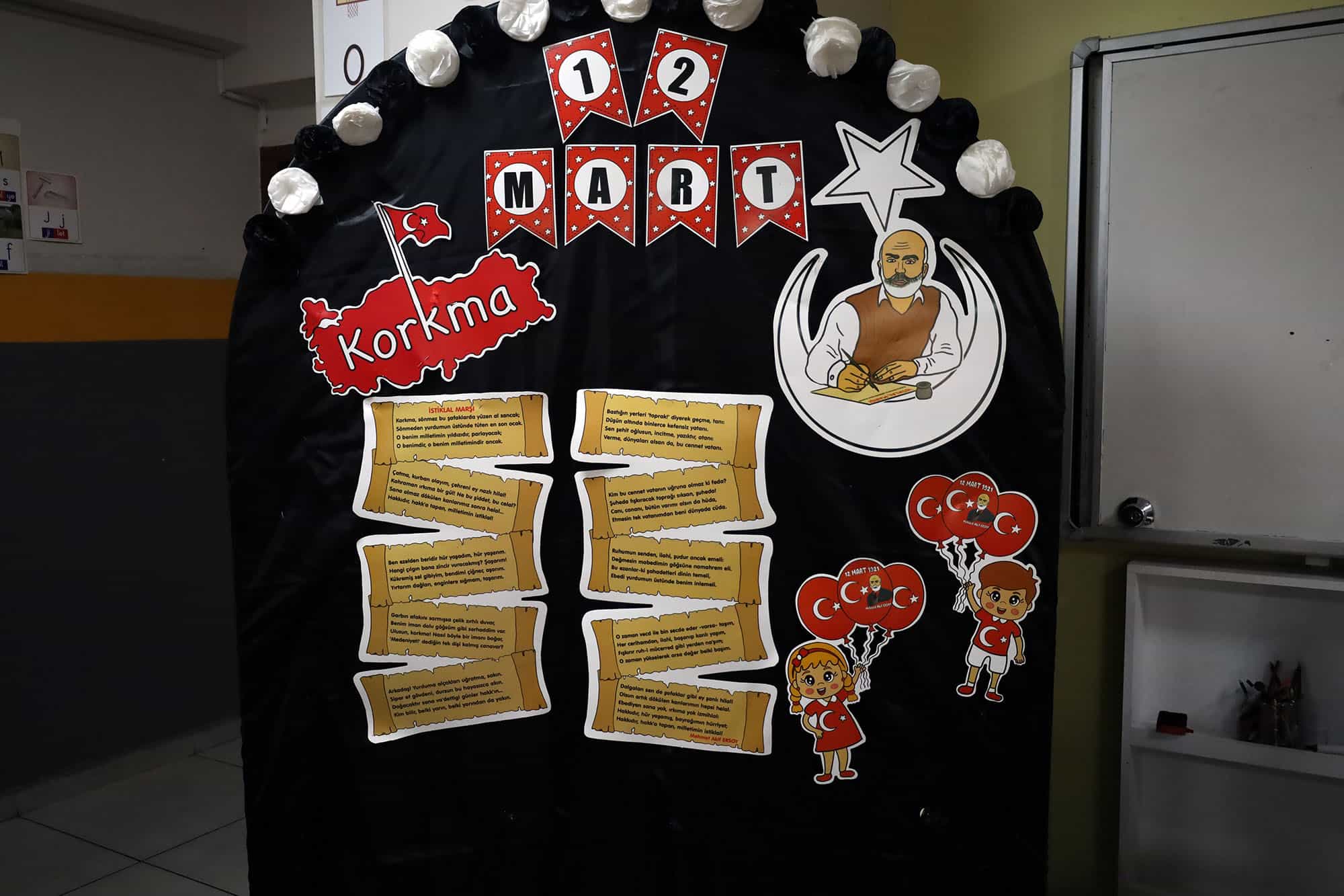 Okul bahçesinde gerçekleşen etkinlikte, İstiklal Marşı’nı güzel okuma yarışmasında birinci olan öğrenci marşı seslendirirken, tüm öğrenciler de ona eşlik etti. Büyük Türk bayrağı eşliğinde okunan milli marşın ardından, Mehmet Akif Ersoy saygı ve minnetle anıldı.