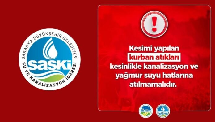 Sakarya Büyükşehir Belediyesi Su ve Kanalizasyon İdaresi (SASKİ), kurban atıkları konusunda vatandaşları uyardı. Kurban atıklarının çevreyi kirletmemesi ve altyapı hattına zarar vermemesi için vatandaşlara sağduyu çağrısı yapıldı. Kanalizasyon ve yağmur suyu hatlarına bırakılan atıkların zamanla koku, haşere ve tıkanmalara neden olduğu belirtildi.