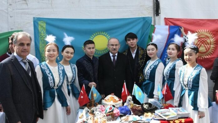 Sakarya Üniversitesi (SAÜ) kampüsünde gerçekleştirilen etkinlikte, Azerbaycanlı, Türkmenistanlı, Kırgızistanlı ve Kazakistanlı öğrenci toplulukları açtıkları stantta yöresel ürünlerini tanıttı.