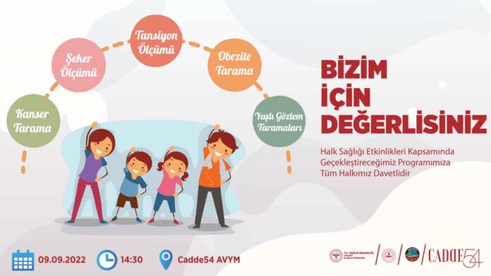 Serdivan Belediyesi ve Serdivan İlçe Sağlık Müdürlüğü’nün, Cadde 54 Alışveriş ve Yaşam Merkezi ev sahipliğinde gerçekleştireceği programda; kanser taraması, tansiyon ölçümü, şeker ölçümü, obezite taraması ve yaşlı gözlem taramaları yapılacağı belirtildi.