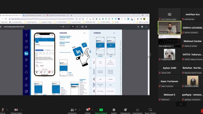 Doğu Marmara ABİGEM iş birliğiyle webinar platformu üzerinden Eğitmen Sedat Ateş’in sunumuyla gerçekleştirilen eğitimde sosyal medya yönetiminin süreç ve aşamaları gibi birçok konuda SATSO Üyesi katılımcılar bilgilendirildi.