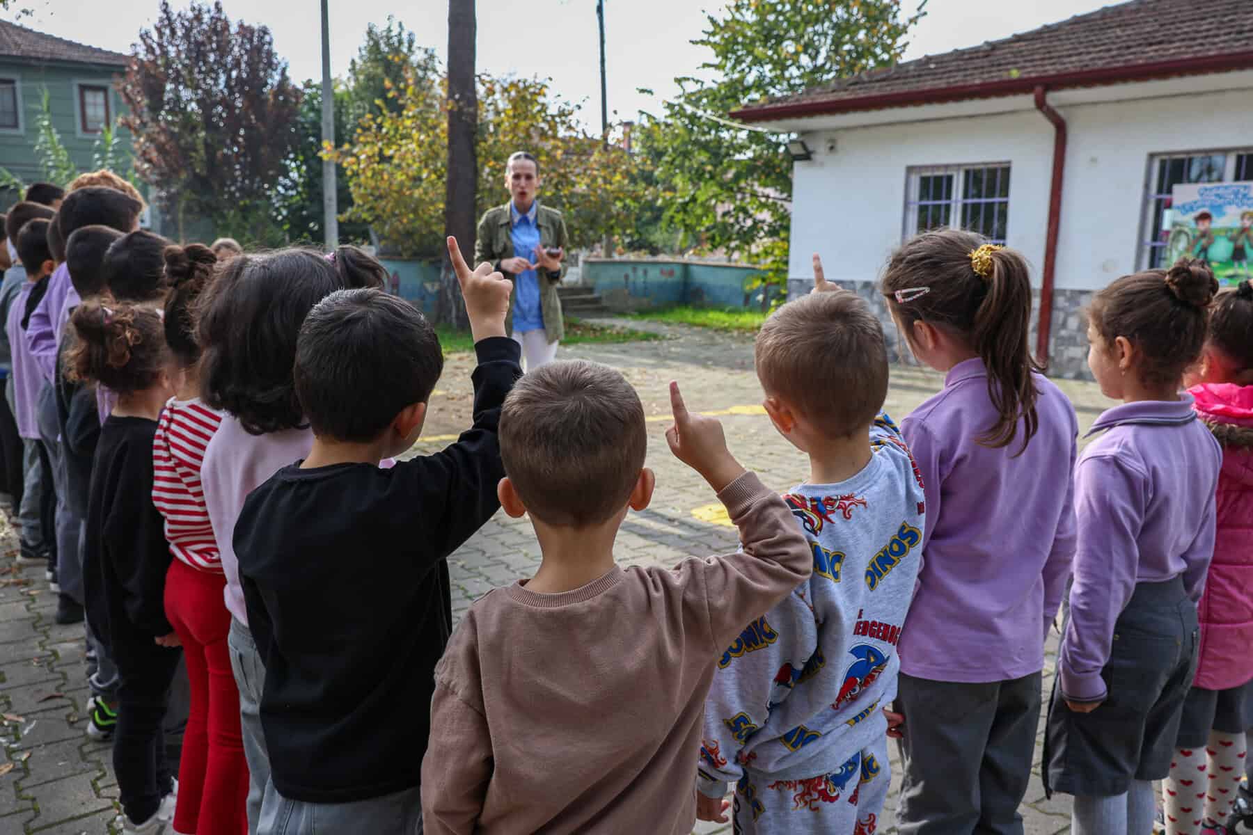 Son olarak Erenler Büyükesence ve Sarıcalar İlkokulu’nda düzenlenen eğitimde, Birleşmiş Milletler (BM) verilerine dayanan küresel riskler anlatıldı.