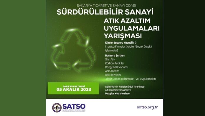 Sıfır Atık, Karbon Ayak İzi, Döngüsel Ekonomi, Atık Azaltım, Geri Kazanım, Temiz Üretim konusunda çalışmaları ve uygulamaları olan firmaların başvurabileceği “SATSO Sürdürülebilir Sanayi İçin Atık Azaltım Uygulamaları Ödülü” ile Sakarya’da çevresel dönüşüme dikkat çekmek farkındalığıyla yeşil dönüşüme katkı sağlamış olan çalışmalar, uygulamalar ve projeleri desteklemek amacıyla firmaların atık azaltım çalışmalarının değerlendirilerek atık yönetimi konusunda SATSO Üyelerinin bilinçlendirilmesinin hedefleniyor.