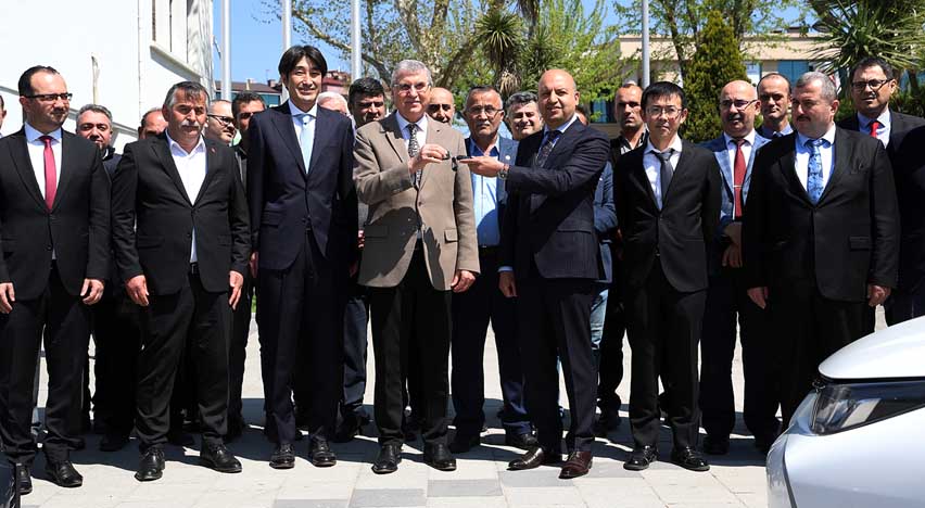 Devir teslim töreninde Başkan Ekrem Yüce, “30 yıllık bir dönem içinde şehrimizde hizmet veren, Sakaryamıza her dem destek veren fabrikası, hastanesi, hayır-hasenatı ve bugün yapmış olduğu büyük bir jestle Toyota fabrikasına teşekkürlerimi sunarım. Ürettiği hibrit otomobiller tüm dünyanın yakından takip ettiği ilgi gösterdiği otomobillerdir. Bugün bizlere büyük bir jest yaparak hibrit araçları Büyükşehir Belediyemize hizmet aracı olarak kullanmak üzere hibe ettiler. Göstermiş olduğu nazik davranışlarından dolayı tüm Toyota ailesine teşekkür ederim. Bizim için ve şehrimiz için Toyota önemli bir değer. Hem şehrimize hem ülkemize önemli katkılar sağlıyor. Toyota ile ilişkilerimizi medeni şekilde dostlukla, dayanışma içerisinde sürdürüyoruz ve sürdürmeye devam edeceğiz” diye konuştu.